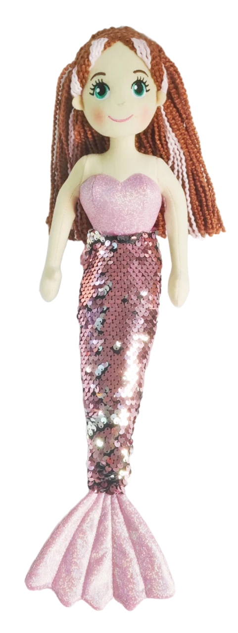 How beautiful is Meri the dark pink flip sequin mermaid doll.