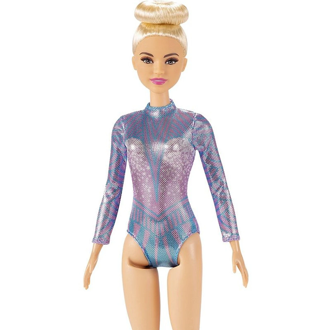 - ​Wearing a colorful metallic leotard and cute bun updo, Barbie® rhythmic gymnast doll (12-in/30.40-cm) is ready to perform rhythmic gymnast moves! ​