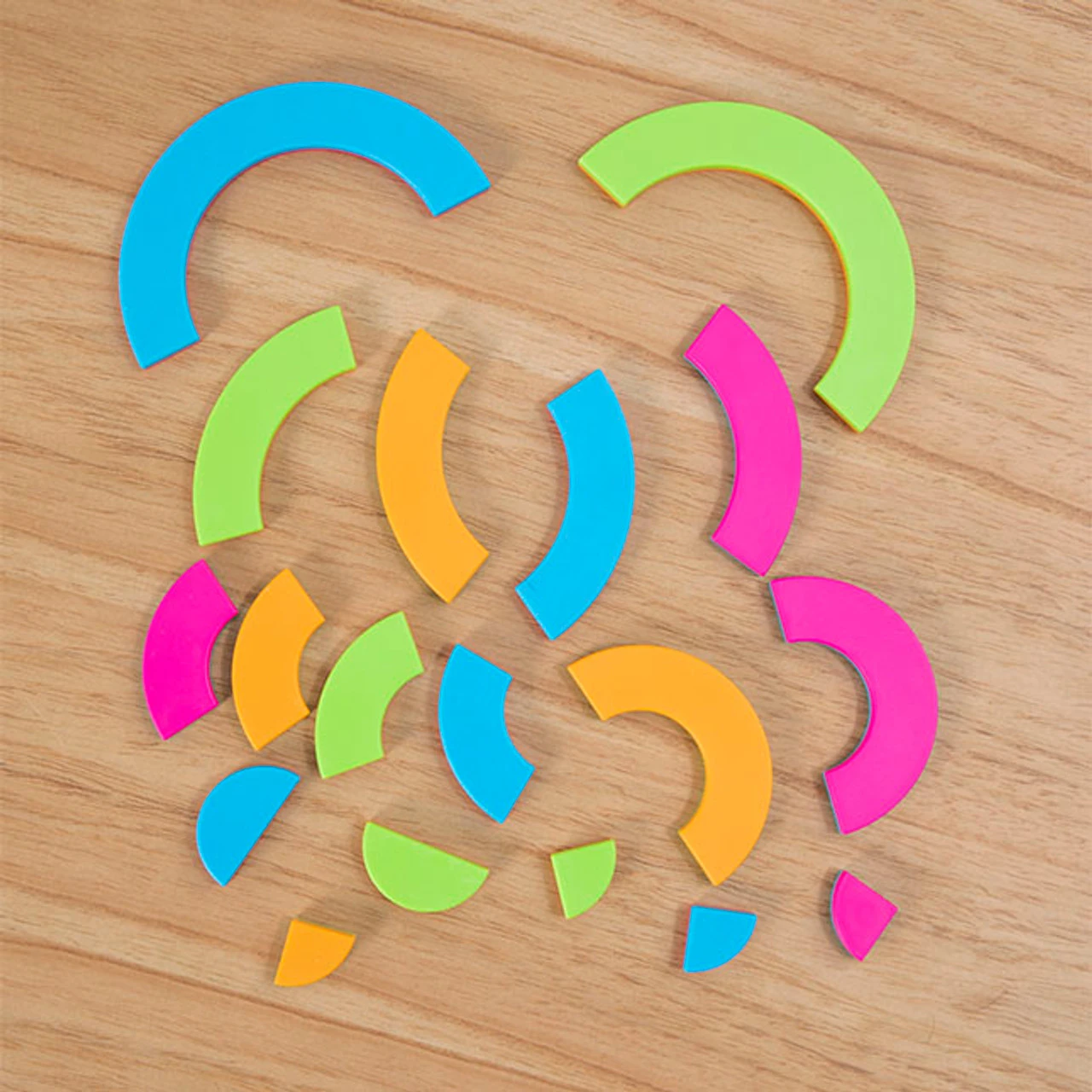 Pick one of the 40 challenge cards and then arrange, flip, and perfectly position the semi-circular puzzle pieces into the bug-shaped tray to match the picture.