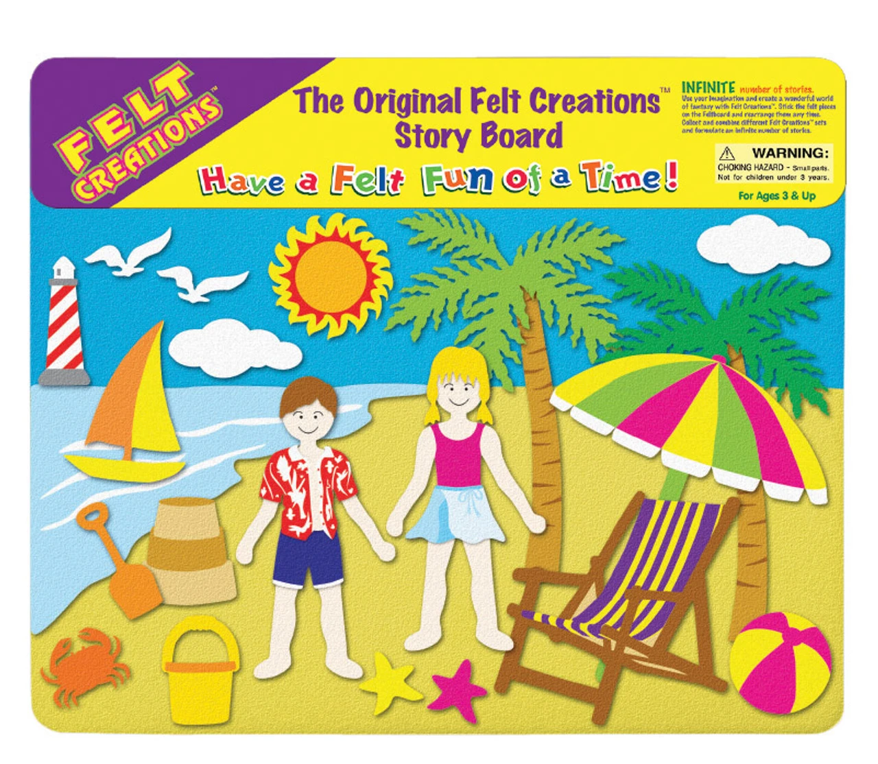 Use your imagination and create a wonderful world of fantasy with Felt Creations. Stick the felt pieces on the feltboard and rearrange them any time. Felt puzzles are non-messy and once a scene is completed, little ones can start all over again. Collect and combine different Felt Creations sets and formulate an infinite number of stories.
