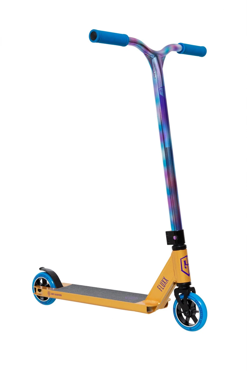 The Grit Fluxx Scooter is the perfect transition scooter from beginner to expert. The Grit Reinforced Riser Handlebars| Solid Steel Fork| IHC Compression and 110mm 88A metal core wheels provide the strength| while the wide Alloy Deck with 3 degrees of concavity provides the extra stickiness to land even the toughest tricks