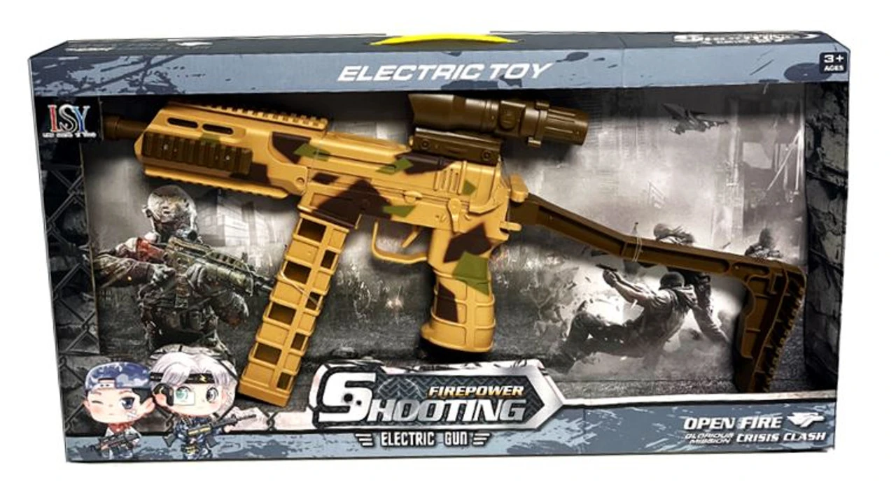 Includes a blue gun instead of the camo (camo can be ordered separately)