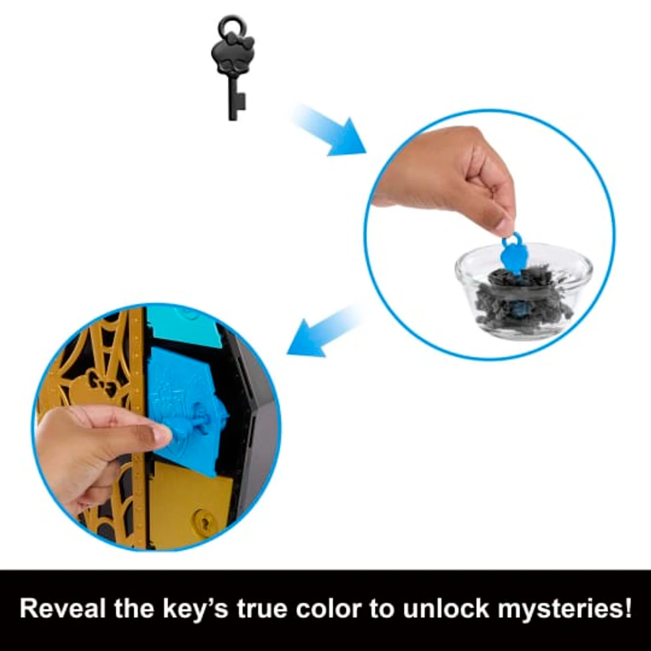 - Can you creep a secret? Take the four keys and wash off their spooky black coating for a Colour Reveal moment, then unlock all four matching compartments to discover hidden items stashed inside.