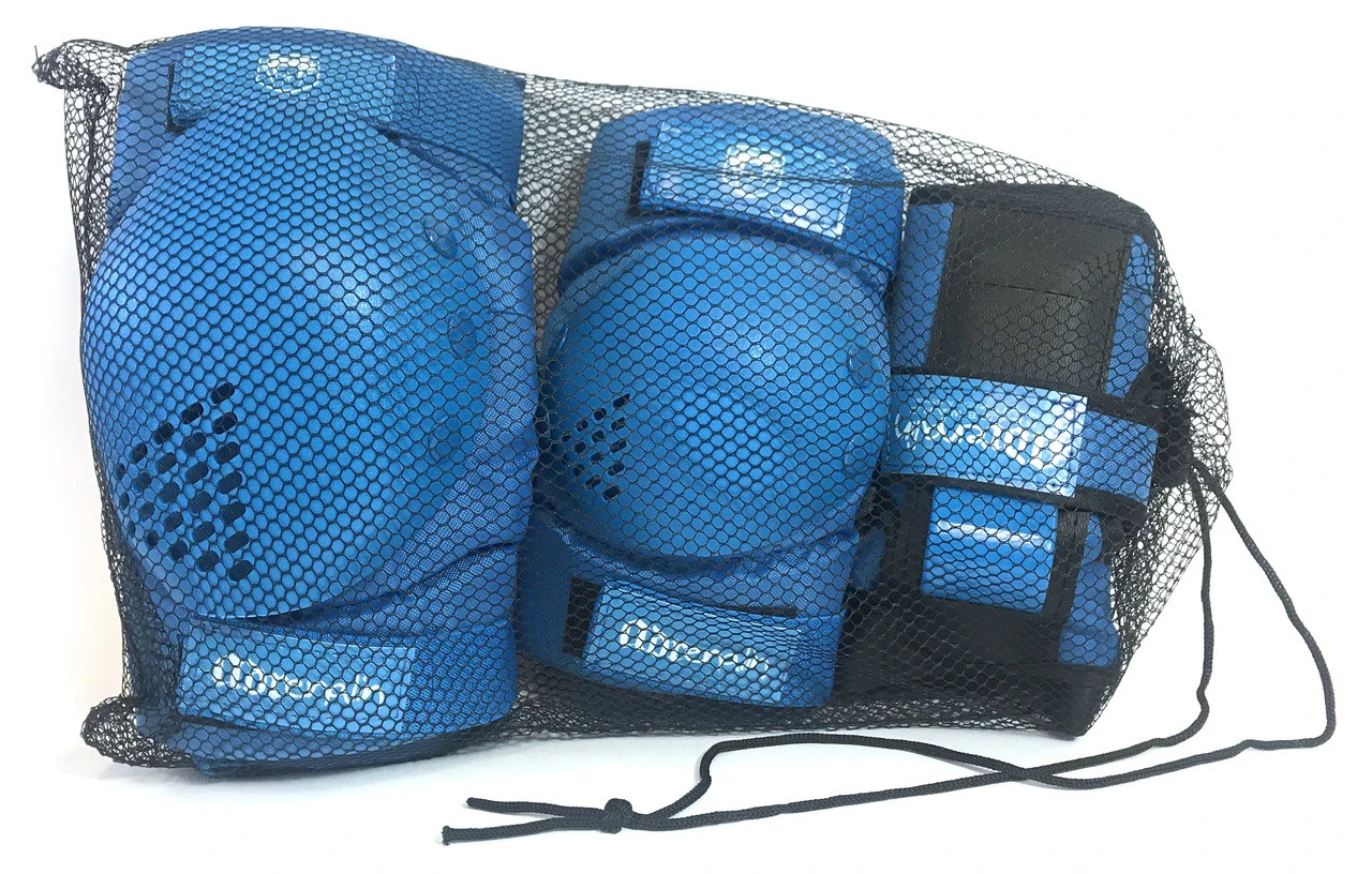6 Piece Pack includes Knee Pads, Elbow Pads and Wrist-Brace Guards, all featuring cushion padding for extra comfort, abrasion-proof PE shell and come in a handy mesh carry bag. The wrist-brace guards feature both a palm brace to reduce wrist roll-over and minimise damage as well as an extra brace on top to reduce wrist hyper-extension (bending backward).