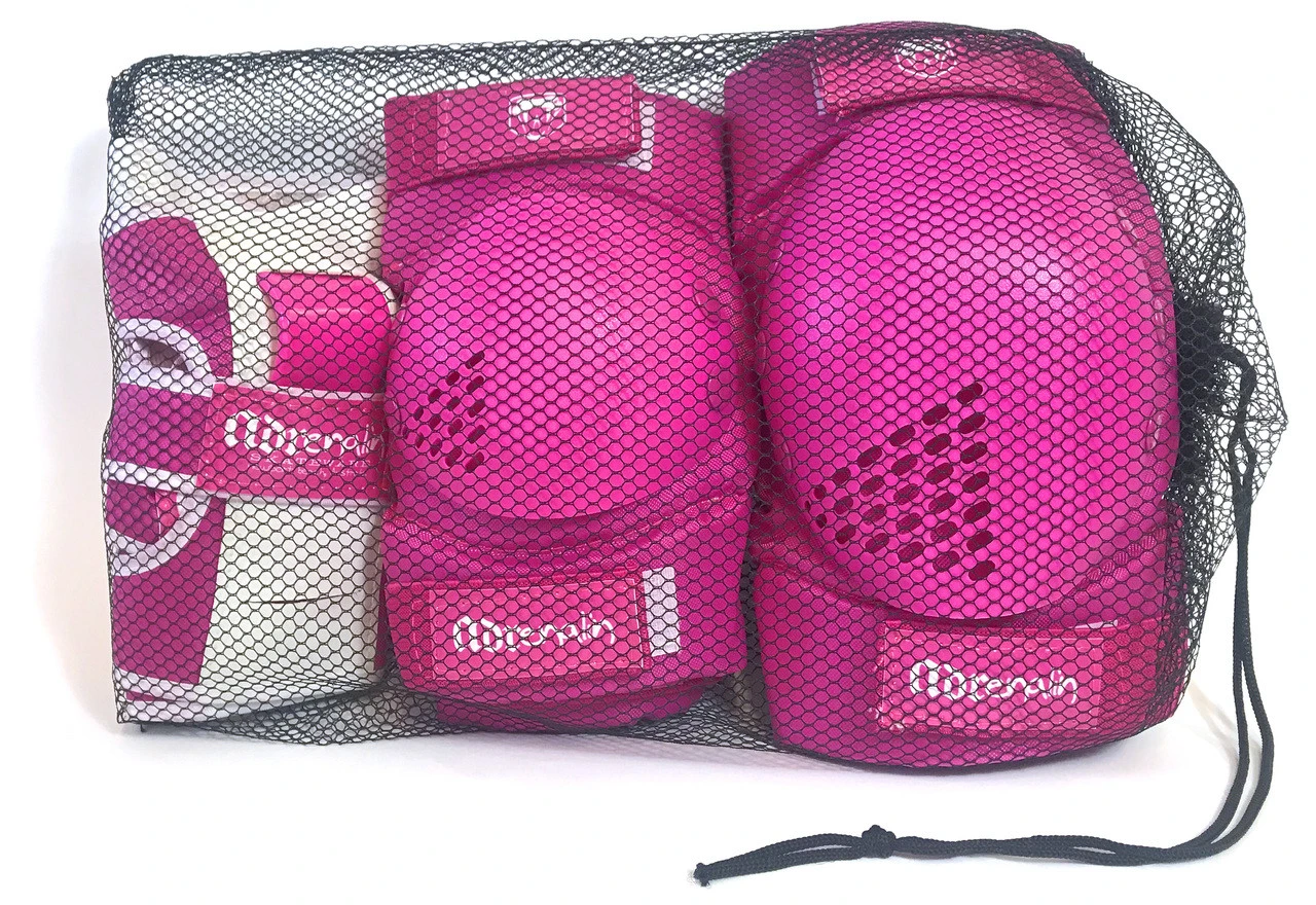 6 Piece Pack includes Knee Pads, Elbow Pads and Wrist-Brace Guards, all featuring cushion padding for extra comfort, abrasion-proof PE shell and come in a handy mesh carry bag. The wrist-brace guards feature both a palm brace to reduce wrist roll-over and minimise damage as well as an extra brace on top to reduce wrist hyper-extension (bending backward).