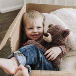 These eco-friendly toys are manufactured and stuffed with 100% recycled polyester from plastic waste.