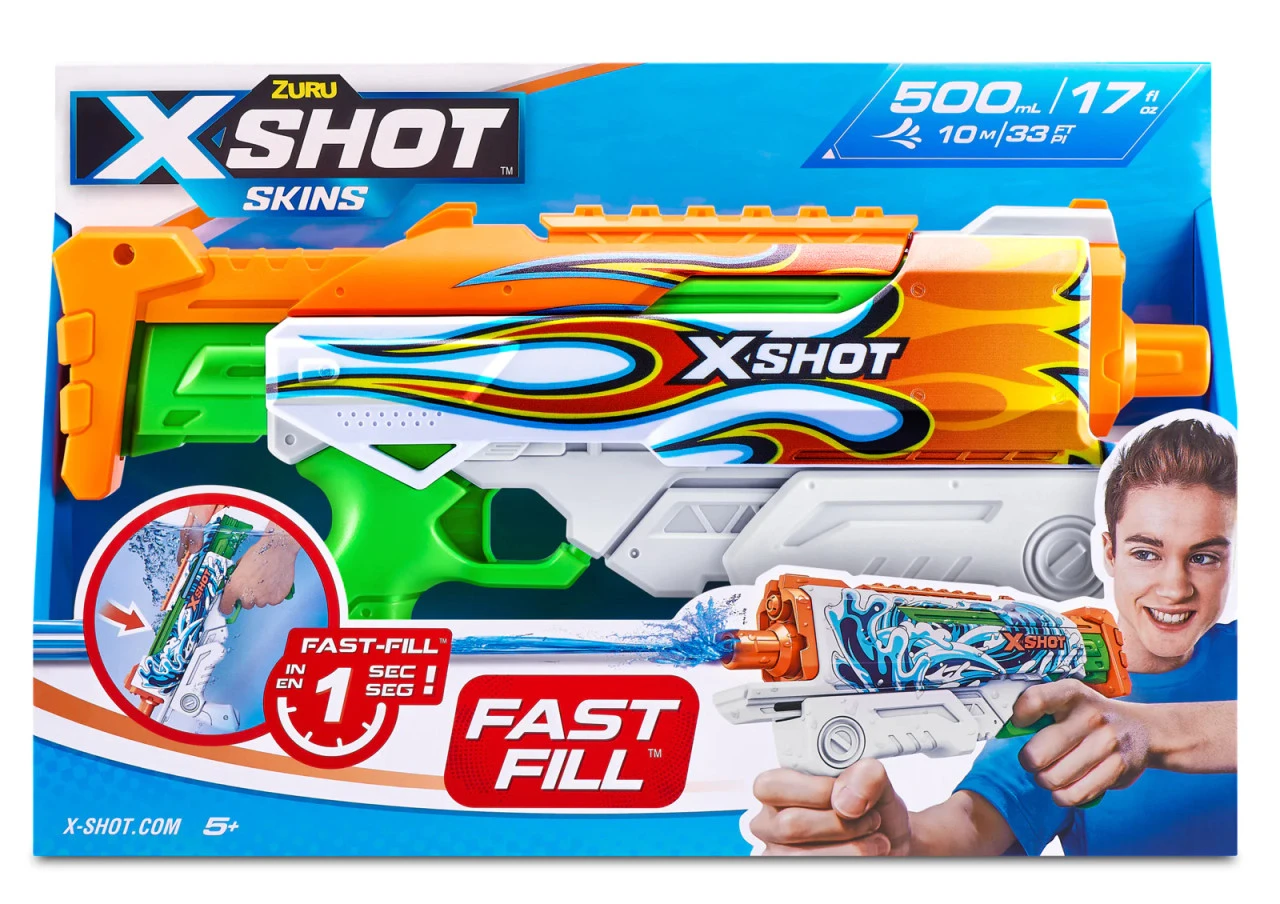 - X-Shot Fast Fill Hyperload can hold 500ml/ 17 Fl OZ. of water inside the blaster